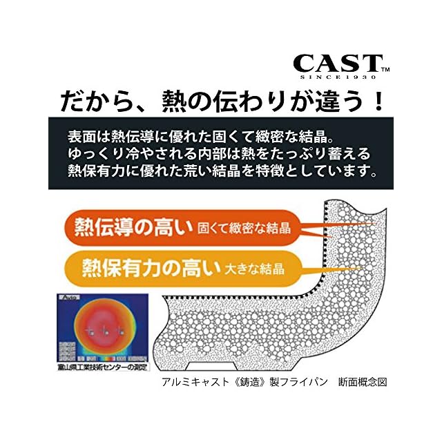 北陸アルミ 深型フライパン 22cm 軽量 ガス火 日本製 深め 軽い 全面均一加熱 時短フライパン 丈夫 frying pan made in japan アルミ鋳物製 キャスト 熱変形に強い 木柄 木ハンドル 金属ヘラ使用 累計販売数100万枚 テフロン加工 最高級コーティング 焦げ付きにくい ジャパンクオリティ PFOAフリー センレンキャスト A-0254