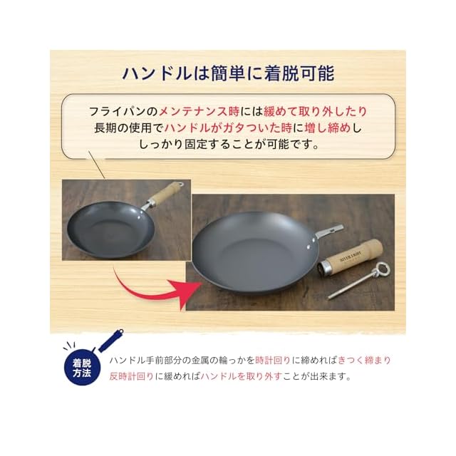 強度を増した鉄なので、金属性のお玉やヘラも、金属タワシでのお手入れも耐える素材です。