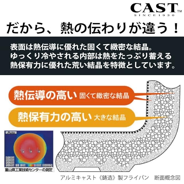 北陸アルミ フライパン 18cm 軽量 ガス火 日本製 深め 軽い 全面均一加熱 時短フライパン 丈夫 frying pan made in japan アルミ鋳物製 キャスト 熱変形に強い 木柄 木ハンドル 金属ヘラ使用 累計販売数100万枚 テフロン加工 最高級コーティング 焦げ付きにくい ジャパンクオリティ PFOAフリー センレンキャスト A-0252