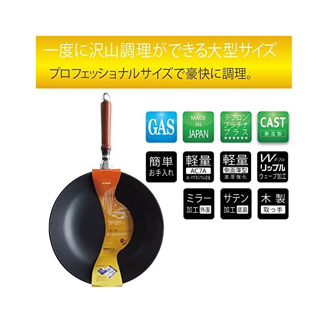 商品名:北陸アルミ フライパン 30cm 軽量 ガス火 日本製 深め 軽い 全面均一加熱 時短フライパン 丈夫 frying pan made in japan アルミ鋳物製 キャスト 熱変形に強い 木柄 木ハンドル 金属ヘラ使用 累計販売数100万枚 テフロン加工 最高級コーティング 焦げ付きにくい ジャパンクオリティ PFOAフリー センレンキャスト A-0245