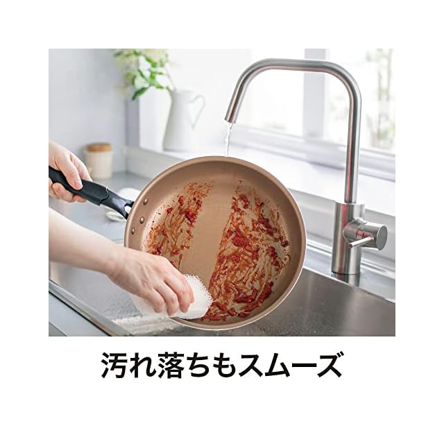 【お手入れ簡単・洗いやすい】フッ素コーティングで食材がこびりつきにくく、使用後もスルッと汚れが落ちるので、後片付けが簡単。