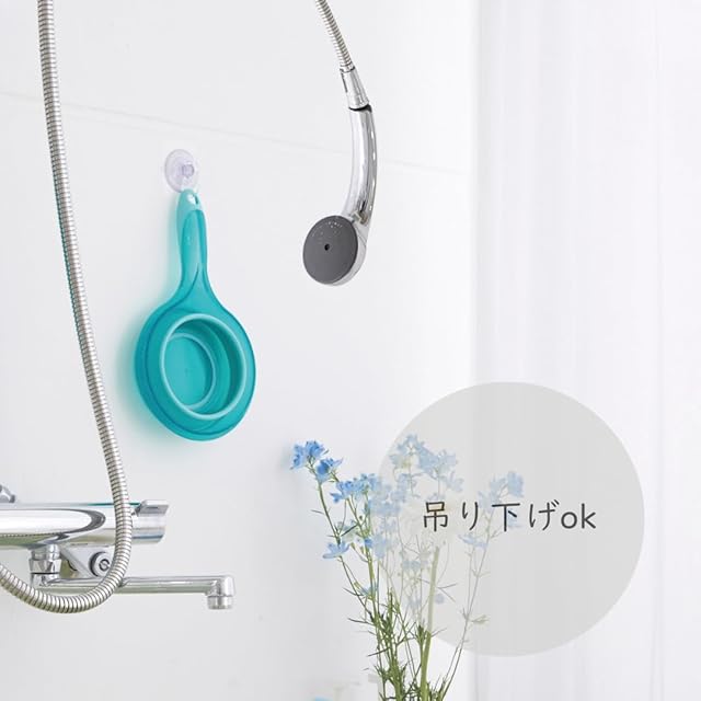 伊勢藤(ISETO) 手おけ ソフト手おけ ブルー 1.2L 幅16.3×奥行28.0×高さ4.4~12.2cm 日本製 折りたたみ 耐熱100℃ 吊り下げ 耐熱 引っ掛け 浴室 湯舟 お風呂 グッズ I-523