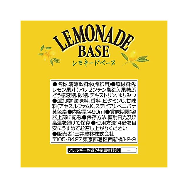 三井農林 日東紅茶 レモネードベース 490ml×3個