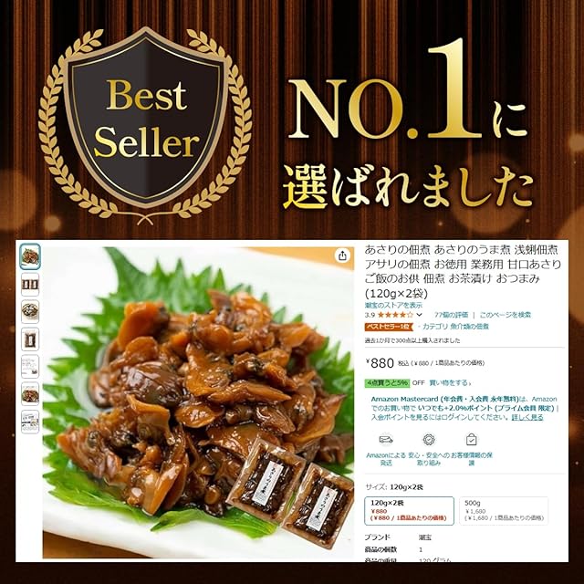 原材料名/ あさり(中国)、砂糖、醸造調味料、醤油、寒天 (材料の一部に大豆、小麦を含む)