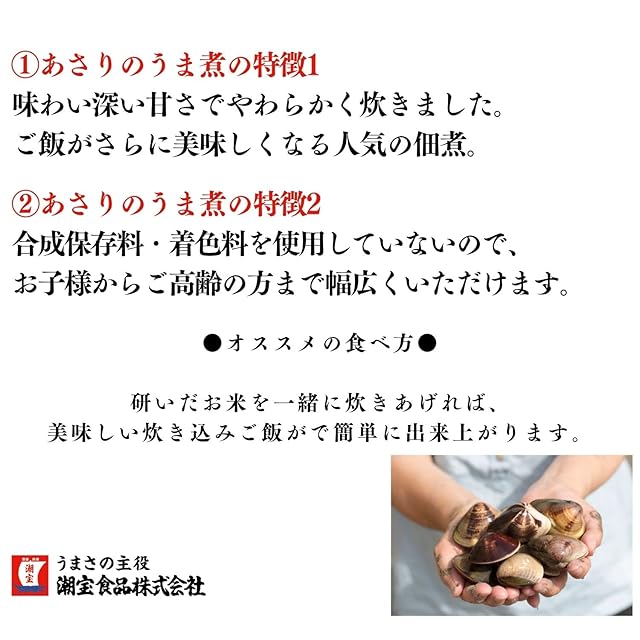 商品名:あさりの佃煮 あさりのうま煮 浅蜊アサリ お徳用 業務用 甘口 ご飯のお供 お茶漬け おつまみ (120g×2袋) 潮宝食品