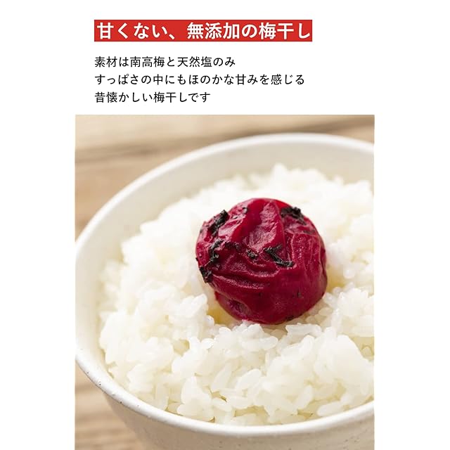 添加物等は一切使用しておらず、粒が大きく皮が柔らかい、完熟した紀州南高梅ならではの、フルーティーな味が楽しめます。甘くないすっぱいしょっぱい梅干しなので、どんな料理にも合います。