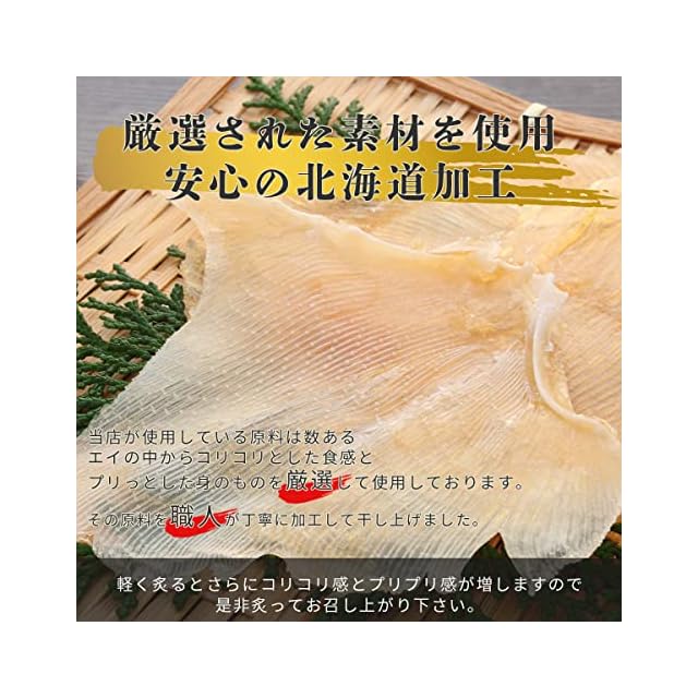 ✅当店が使用している原料は数あるエイの中からコリコリとした食感とプリっとした身のものを厳選して使用しております。 その原料を職人が丁寧に加工しました。軽く炙るとさらにコリコリ感とプリプリ感が増しますので是非炙ってお召し上がり下さい。