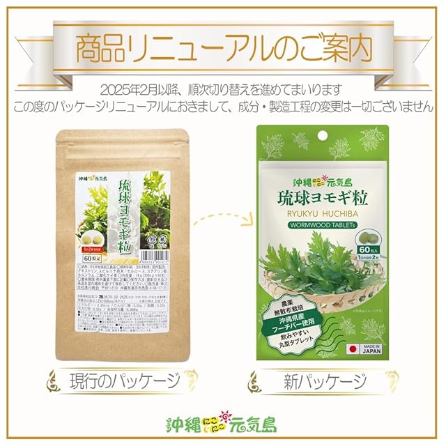 60粒(約1か月分)。沖縄県産ヨモギ使用の粒。フーチバーエキスとの相性抜群! 沖縄県産よもぎ使用。