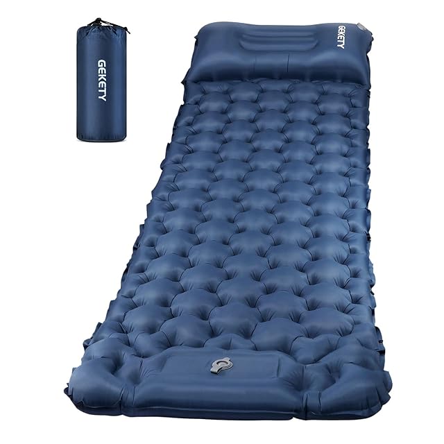エアーマット GEKETY 【約10CM厚さ】 キャンプ マット 足踏み式 無限連結可能 枕付き エアマット キャンプ 防災 車中泊 厚手 軽量 コンパクト 防水防潮 持ち運び便利 簡単収納 収納袋付き