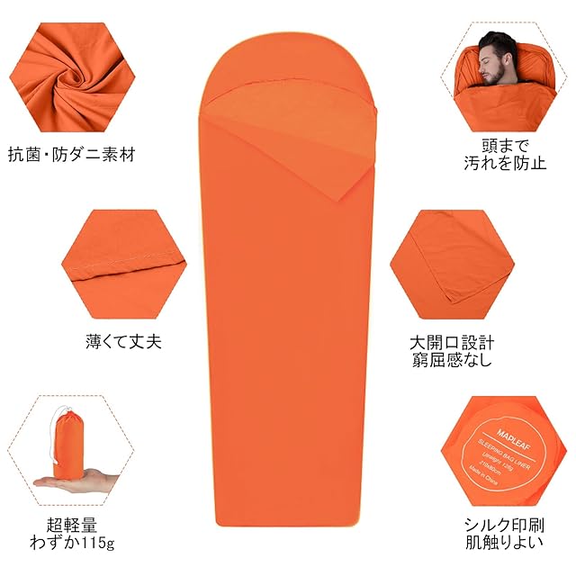 商品名:Mapleaf インナーシーツ インナーシュラフ 超軽量 123g コンパクト 速乾 シュラフライナー トラベルシーツ 保温 山小屋泊 登山 アウトドア キャンプ ホテル 防災 室内 車中泊 収納袋付 丸洗い可能