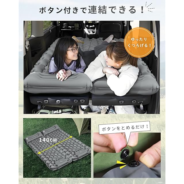 ✅【無限連結可能なデザインで、ファミリーにも対応】GEKETYのエアマットは、両サイドに設けられた接続ボタンによって、複数枚のマットを簡単に連結できます。隙間を作らずにぴったりと連結できるため、家族やカップル、グループでの使用にも最適です。何枚でも無限に繋げられるので、大きなテント内でも一体感のある寝床を作ることが可能。小さなお子様と一緒に寝る場合や、荷物を並べて置きたい時にも便利な設計です。