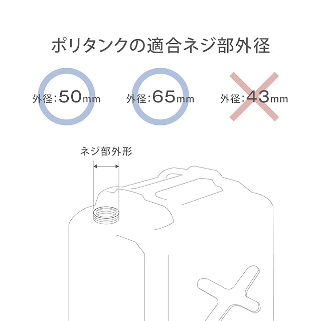 ※注意事項:給水口ネジ部外径50mm・65mm専用となり、広口タイプには使用できません。(ポリタンクは付属しておりません。)