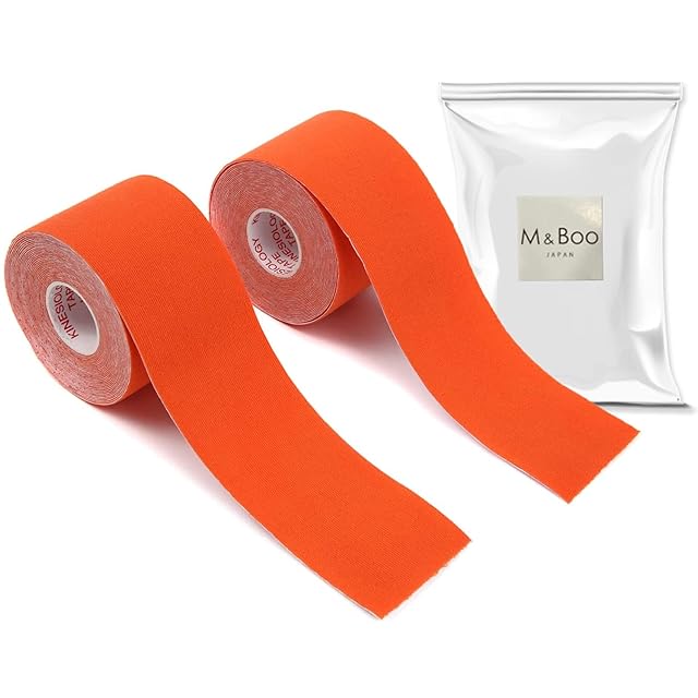商品名:テーピングテープ キネシオテープ キネシオロジーテープ 2巻入 筋肉関節サポート 通気性伸縮性汗に強い 5cm x 5m (M&Boo) (オレンジ)