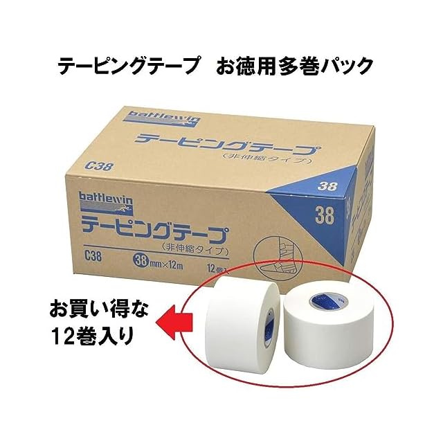 商品名:ニチバン バトルウィンテーピングテープ 非伸縮タイプ 38mm幅 12m巻き 12巻入り