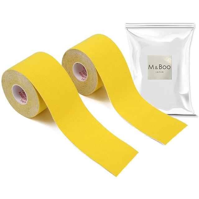 商品名:テーピングテープ キネシオテープ キネシオロジーテープ 2巻入 筋肉関節サポート 通気性伸縮性汗に強い 5cm x 5m (M&Boo) (イエロー)