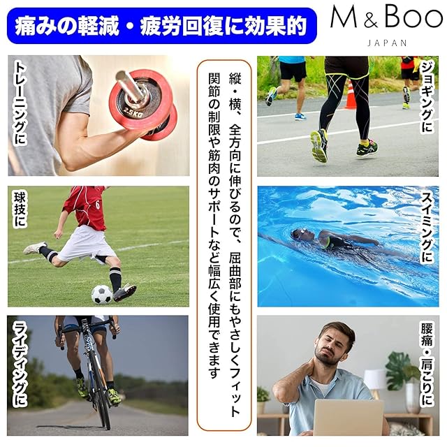 【特定箇所の痛みに】伸縮性もほど良く、スポーツをする方やいわゆる職業病で特定の箇所をサポートしたい方におすすめです。汗や水に強く、貼ったままでシャワーや水泳も可能です。表面に小さな穴があり、通気性に富んでいます。