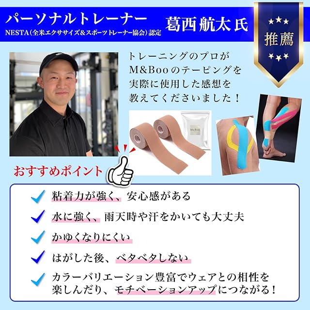商品名:テーピングテープ キネシオテープ キネシオロジーテープ 2巻入 筋肉関節サポート 通気性伸縮性汗に強い 5cm x 5m (M&Boo) (ブルー)
