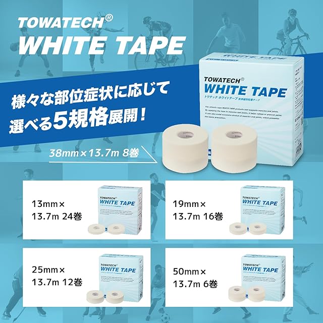商品名:トワテック ホワイトテープ 25mm×13.7m×12巻 非伸縮 固定用テーピング 手で切れる 個包装