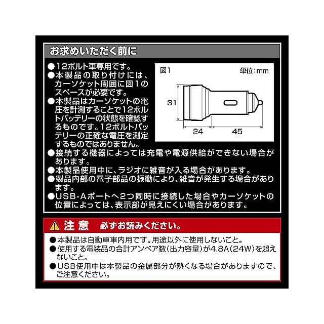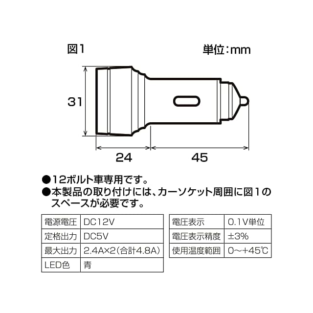 【 取付条件 】カーソケット周囲に最大直径31mm✕飛び出し長さ24mmが収まるスペースが必要です。