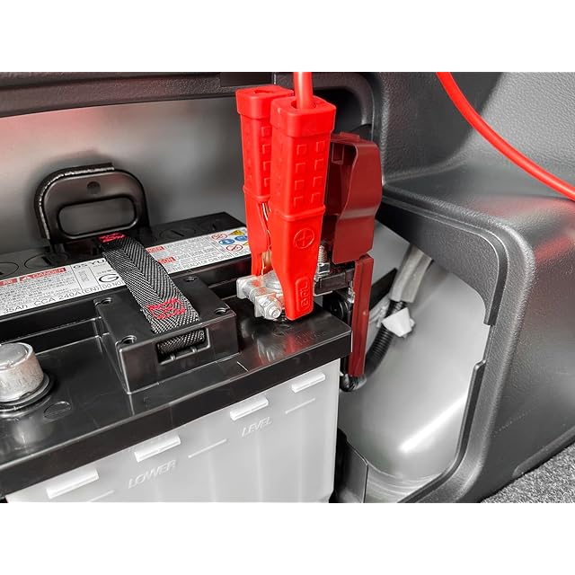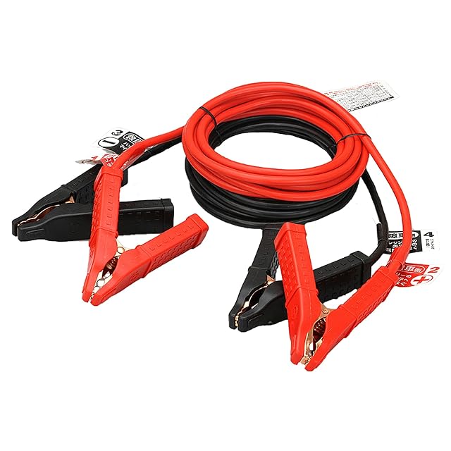 商品名:BAL(大橋産業) ブースターケーブル DC12V DC24V 100A 3.5m 軽自動車 コンパクトカー 普通乗用車 SUV ワンボックス トラクター 2tトラック HV ハイブリット車 救援端子 細型絶縁フルカバークリップ 取り付け手順タグ 品番:1682
