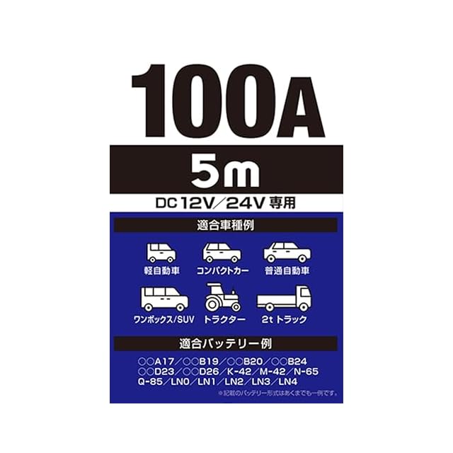 適合バッテリー範囲 A17 B19 B20 B24 D23 D26 K-42 M-42 N-65 Q-85 LN0 LN1 LN2 LN3 LN4 ※記載のバッテリー形式はあくまでも一例です。