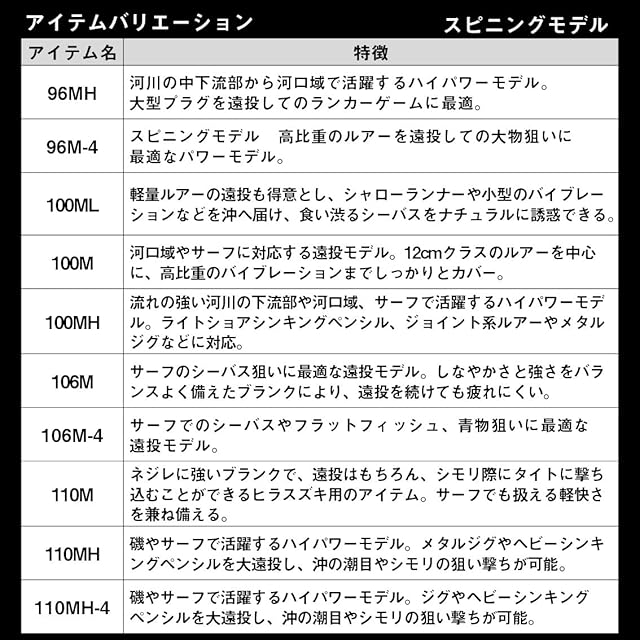 【ルアー重量(g)】: 10-50【先径&元径(mm)】: 2.0/11.9