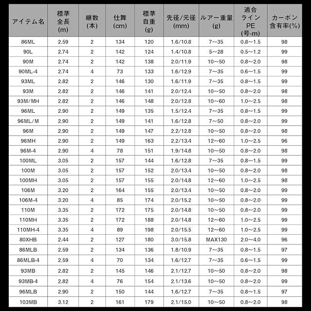 【ルアー重量(g)】: 7-35【先径&元径(mm)】: 1.6/10.8