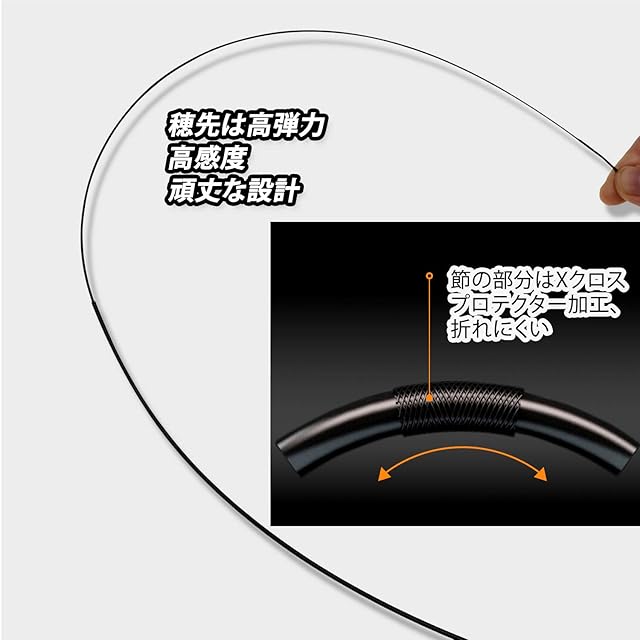 従来のカーボンソリッドと比較して、含まれるカーボン繊維の密度が均一なので曲がりのバラツキが少なく、より正確な竿操作が可能。