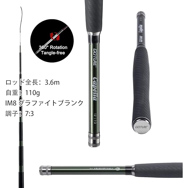 商品名:Goture テンカラロッドセット 渓流竿 3.6m/12ft テンカラロッド テンカラ竿 軽量 炭素繊維【テンカラ】 渓流釣り/河川釣り トラウト ヤマメ イワナ ニジマス アマゴ 釣り竿 カーボン製グリップ