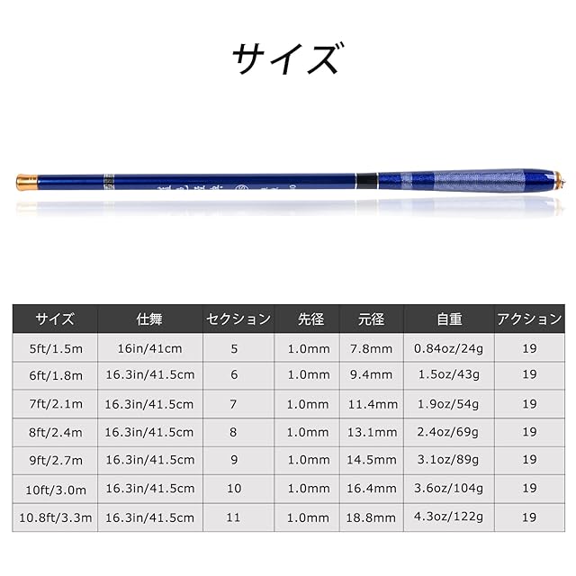 商品名:Goture コンパクト延べ竿 渓流竿ロッド 万能竿 釣り竿 高強度 河川 堤防 湖畔 渓流 ロッド 釣り竿 3.6m 2本セット ブルー