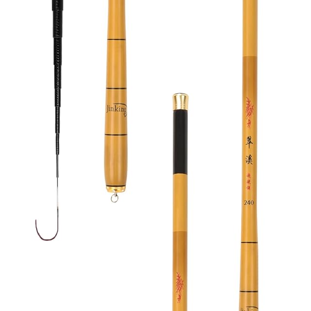 商品名:JINKING 渓流竿 ロッド 釣り竿 炭素繊維製 超軽量 硬調 360度回転リリアン コンパクト延べ竿 小魚万能竿 2.4M 初心者&子供