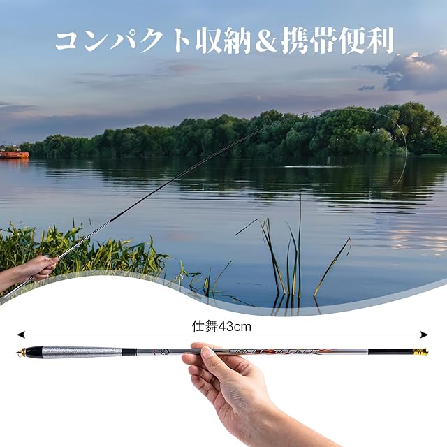 【商品仕様】サイズ:3.0m、仕舞:43cm、自重:60g、セクション:9、カーボン素材。43CMという超小継仕舞 、によりデイパックや旅行カバンにも収納しやすい、持ち運びが容易で釣りやすい。