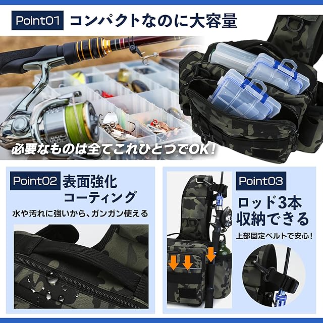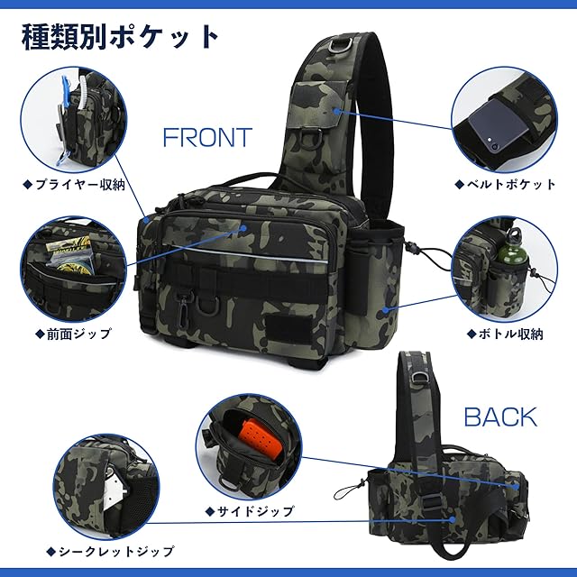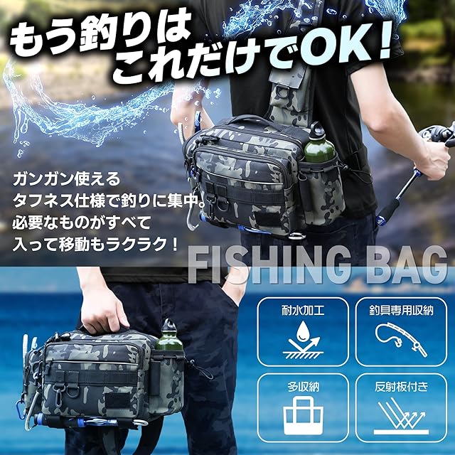 サイズ 27×20×13cm ✅ウエスト、ショルダー、手提げバッグとしても使用可能で釣り中の便利さを追求し、前掛けでも後ろ掛けでもご使用いただけます。その他のご使用例として、渓流、バス釣り、アウトドアやキャンプ、旅行など普段使いでもお使いいただけます。また自転車移動や歩いている際にもしっかり固定ができ、安心してお使いいただけます。