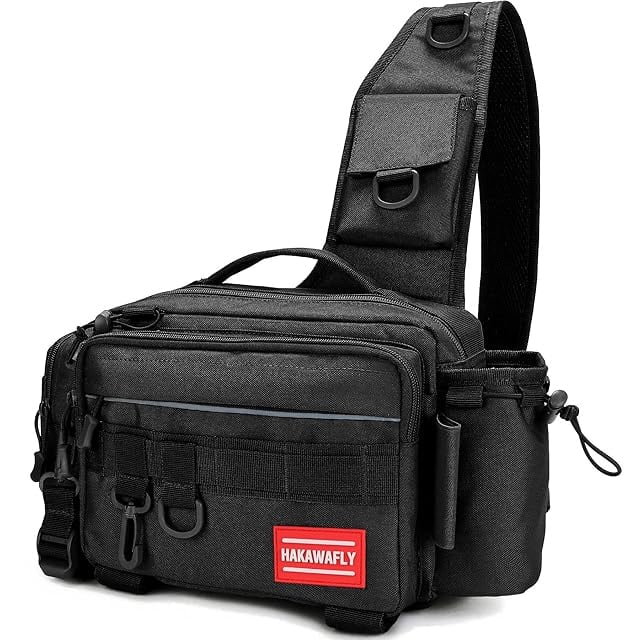 HAKAWAFLY フィッシングバッグ5WAY ロッドベルト2点とカラビナ5点付き 釣りバッグ 防水 タックルバッグ 多機能 大容量 ランガンバッグ (ブラック)