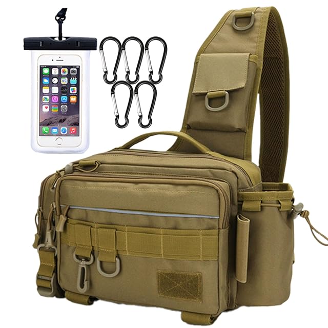 nda-style 釣りバッグ フィッシングバッグ ショルダーバッグ 多機能 大容量 タックルバッグ ランガン カラビナ5個 防水スマホケース付き (ベージュグリーン)