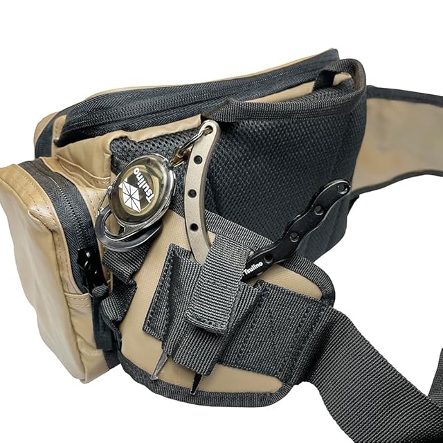 コンパクトなのに収納力抜群のランガンヒップバッグ。表面生地にはターポリン素材を使用し撥水性を高めました。右サイド、フロントには、さらに収納力を高めるポケットを配置、左サイドにはペットボトルホルダー、ベルト部にはプライヤーホルダー、D環を配置。自分のスタイルに合ったレイアウトを楽しめます。