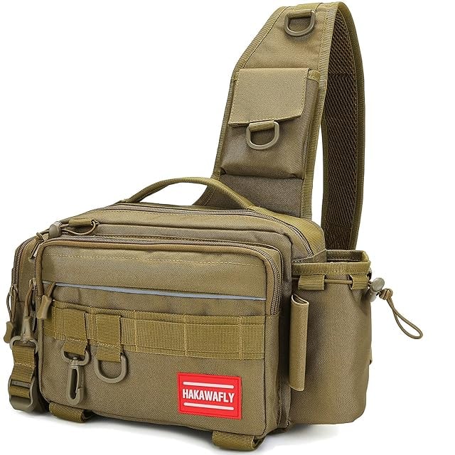 HAKAWAFLY フィッシングバッグ5WAY ロッドベルト2点とカラビナ5点付き 釣りバッグ 防水 タックルバッグ 多機能 大容量 ランガンバッグ (カーキ)