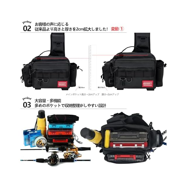 商品名:HAKAWAFLY フィッシングバッグ 防撥水 ロッドベルト2点とカラビナ5点付き 釣りバッグ 5WAY タックルバッグ 多機能 釣り ショルダーバッグ 大容量 ランガンバッグ (防撥水4.0/BLACK)