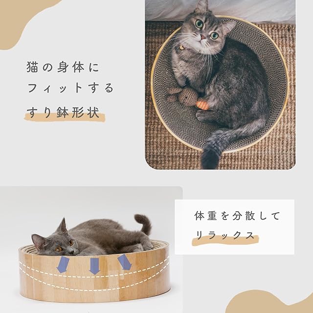 商品名:猫壱 爪とぎ バリバリボウル 猫柄 ライトブラウン レギュラー 2個セット