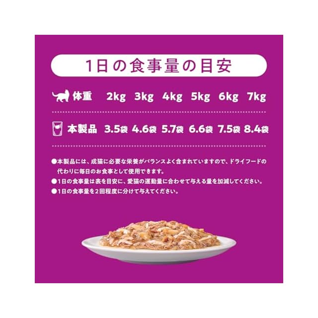 『うまみレシピ』とは、うまみが凝縮されたゼリーに具材をギュッと混ぜ込んだこだわりのレシピ。抜群の味・食感・匂いで愛猫が喜びます。(※ペットフード公正取引協議会が定める愛猫の健康維持に必要な栄養素が全てバランスよく設計されたフードです)