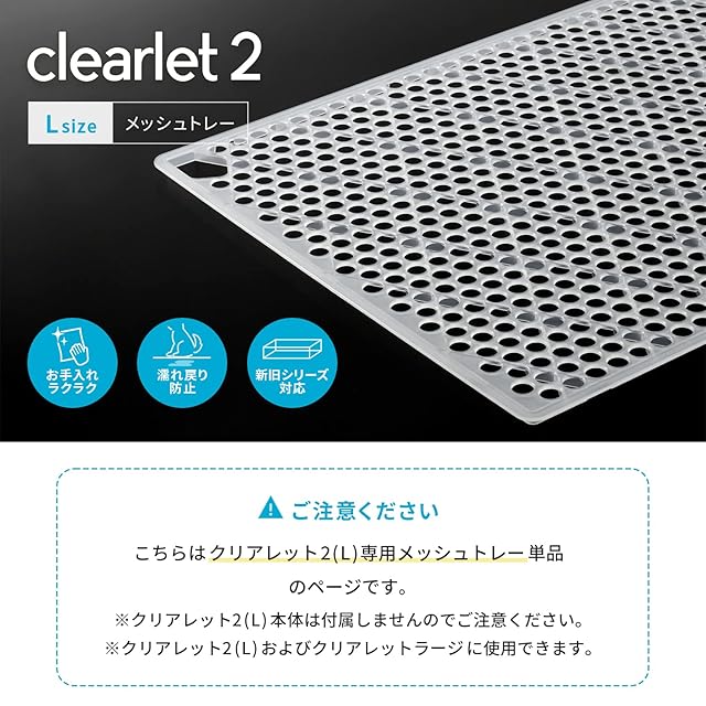 こちらはクリアレット2(L)専用メッシュトレー単品のページです。 ※クリアレット2(L)本体は付属しませんのでご注意下さい。 ※クリアレット2(L)およびクリアレット(旧型L)に使用できます。