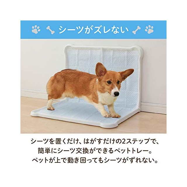 【シーツがズレない】:シーツを置くだけ、はがすだけの2ステップで、簡単にシーツ交換ができるペットトレー。ペットが上で動き回ってもシーツがずれない。