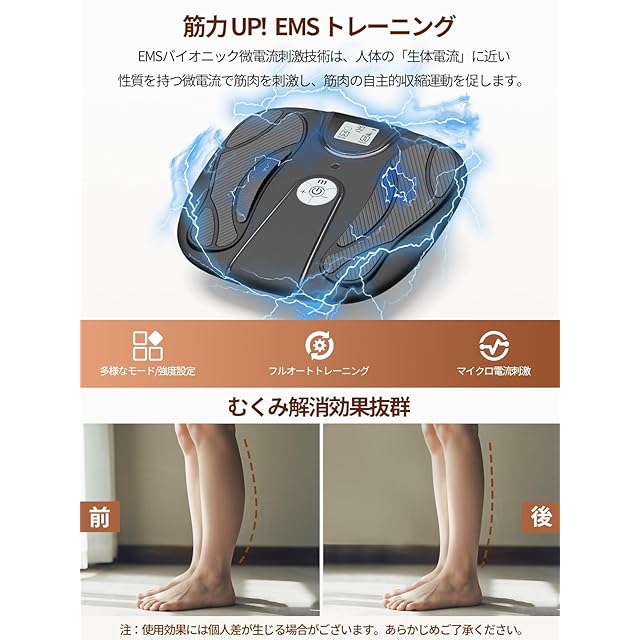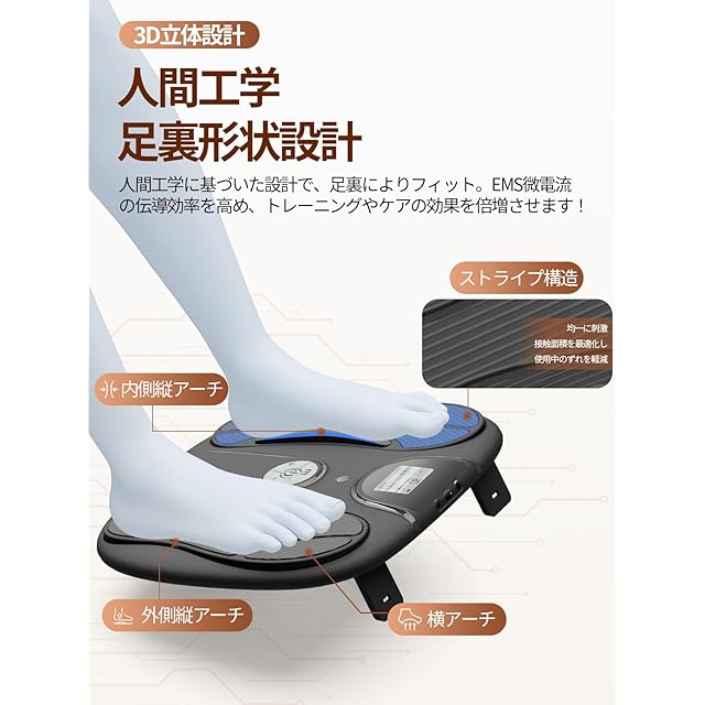 【EMS電流刺激・足の疲れを瞬時に解消!】最新のEMS(電気筋肉刺激)技術を採用し、通常のEMS製品では届きにくい深層筋までアプローチ可能。微電流が筋肉をリズミカルに収縮させることで、血行促進・疲労物質の排出・むくみ解消を促進します。従来製品よりも効果的な刺激で、本格的なフットケアを自宅で再現します。