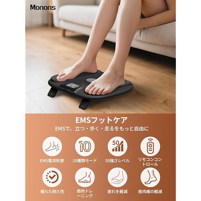 『筋力トレーニング・むくみ解消』Monons[モノンズ] EMS フットケア 10種類モード/50段階強度 トレーニング 足裏 リモコン付き 充電式 フットリラックス 足裏ケア タイム-機能 自動オフ 男女兼用 足ツボ 持ち運び便利 フットトレーニング