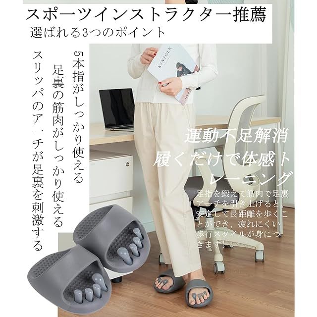 【履くだけ美と健康】✅健康スリッパ・ツボスリッパ・足のむくみ解消グッズ:ツボにここちよい刺激を与え血行促進、健康な身体づくりを! 1日10分履くだけで足の疲れが緩和されます。むくみを軽減し、すっきりしたラインへ導く。✅姿勢矯正スリッパ・5本指スリッパ:足指 トレーニングにより、つま先のグリップ力が強化され、足のアーチが安定し、足裏が安定した3点バランスを形成し、腰椎と骨盤矯正して姿勢を改善します。自然と姿勢が整い、立ち姿も歩く姿も美しく。✅体幹 スリッパ:履くだけで自然に脚やお尻、お腹など普段使わない筋肉に力が入り、その結果、痩せるや足痩せの効果が得られます。✅ながらトレーニングの最高峰:忙しくても簡単に取り入れられる 履くだけだから、家事や仕事中もOK。