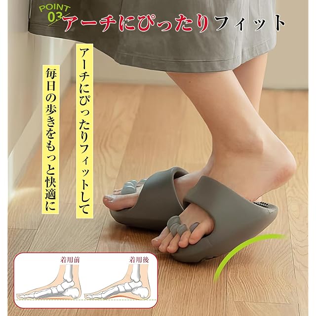 ✅ 疲れた足をリフレッシュ:足指ストレッチ効果と心地よい刺激で、履いた瞬間からリラックス。一日の疲れを癒し、心も体も軽やかに。