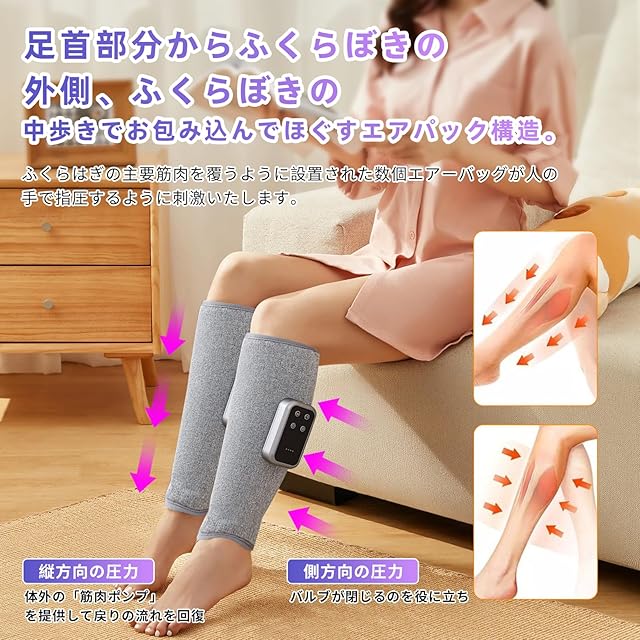 商品名:【2025新登場・空気圧・温熱】ふくらはぎリラックス エアーレッグリラックス 空気圧 温熱 太もも 足ケア Tpye-C充電式 コードレス 3つ空気圧モード 3段階強度 3段階温度 20分自動オフタイマー サイズ幅調節可 操作簡単 運動後/座り仕事/立ち仕事/長時間の歩きなどに男女適用 家庭用 フィット クリスマス 誕生日 記念日 敬老日 プレゼント 持ち運び便利 日本語説明書 充電ケーブル付属(2pcs梱包)