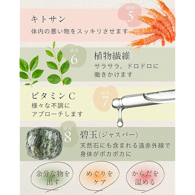 【8つの天然成分配合】木酢末、竹酢末、どくだみ末、ビワ末、キトサン、ビタミンC、碧玉パウダー、食物繊維をベストバランスで配合しています。