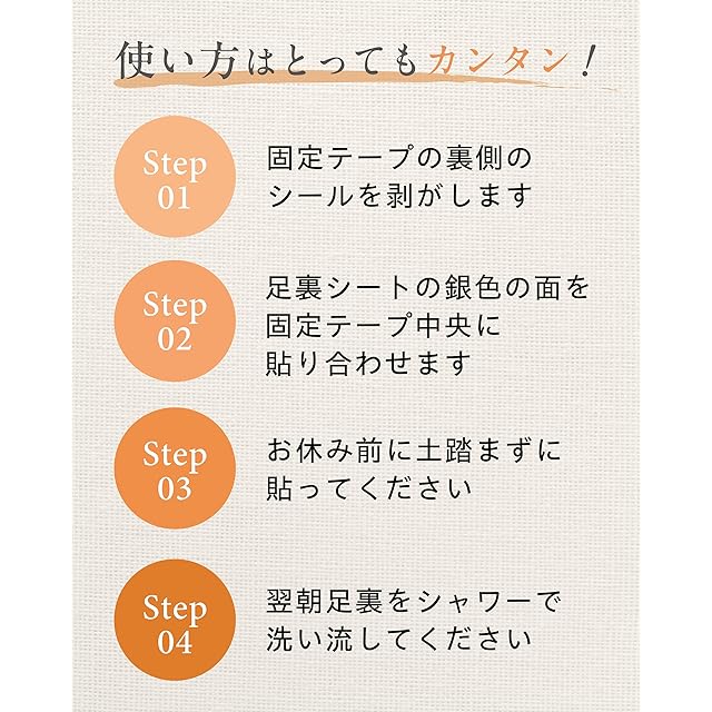 【使い方はとっても簡単】寝る前に足裏に貼るだけ。真っ白だったシートが翌朝まっ黒になっているので見た目でも爽快感を味わえます!