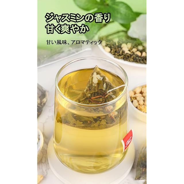 商品名:ジャスミン茶 ティーバッグ 甘く爽やか 爽やかでクセがなく 強いジャスミンの香り ジャスミンティー 中国茶 茉莉花 绿茶 花茶 中国绿茶 さんぴん茶 ハーブティー 無添加 (150g*1袋,50小袋)